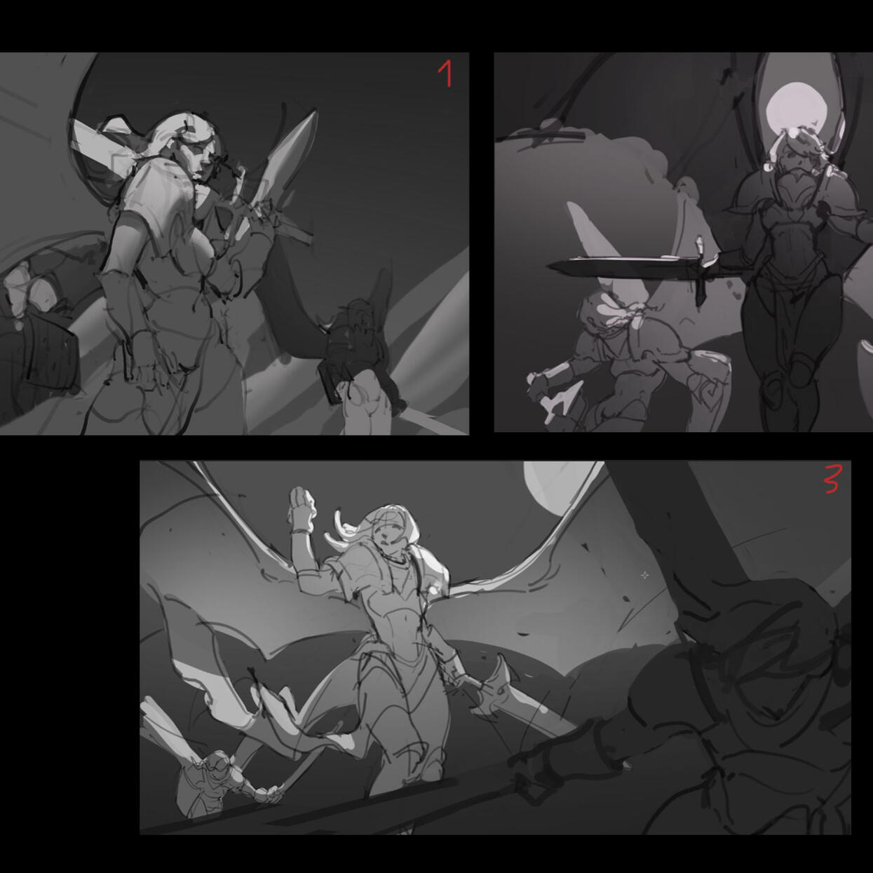 1.I will give you some sketch options (pose, design, concepts,mood..) for you to choose from.