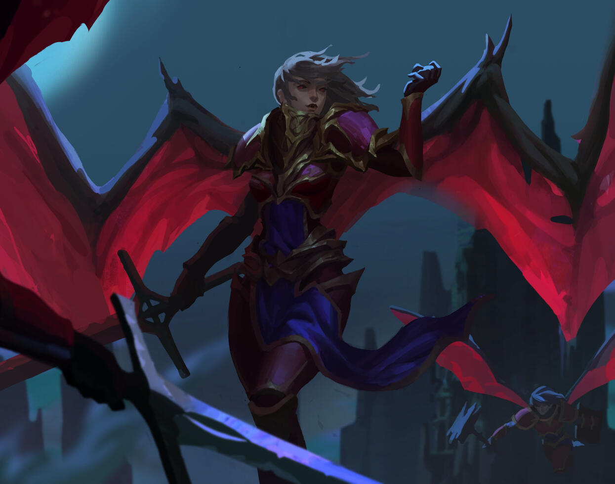 I call it "Splash art" because this will take much more time spending on rendering details to the highest quality.Character painting: 500$Background: 500$